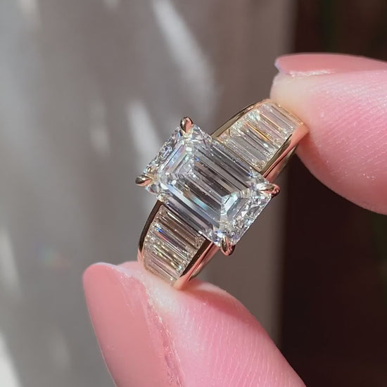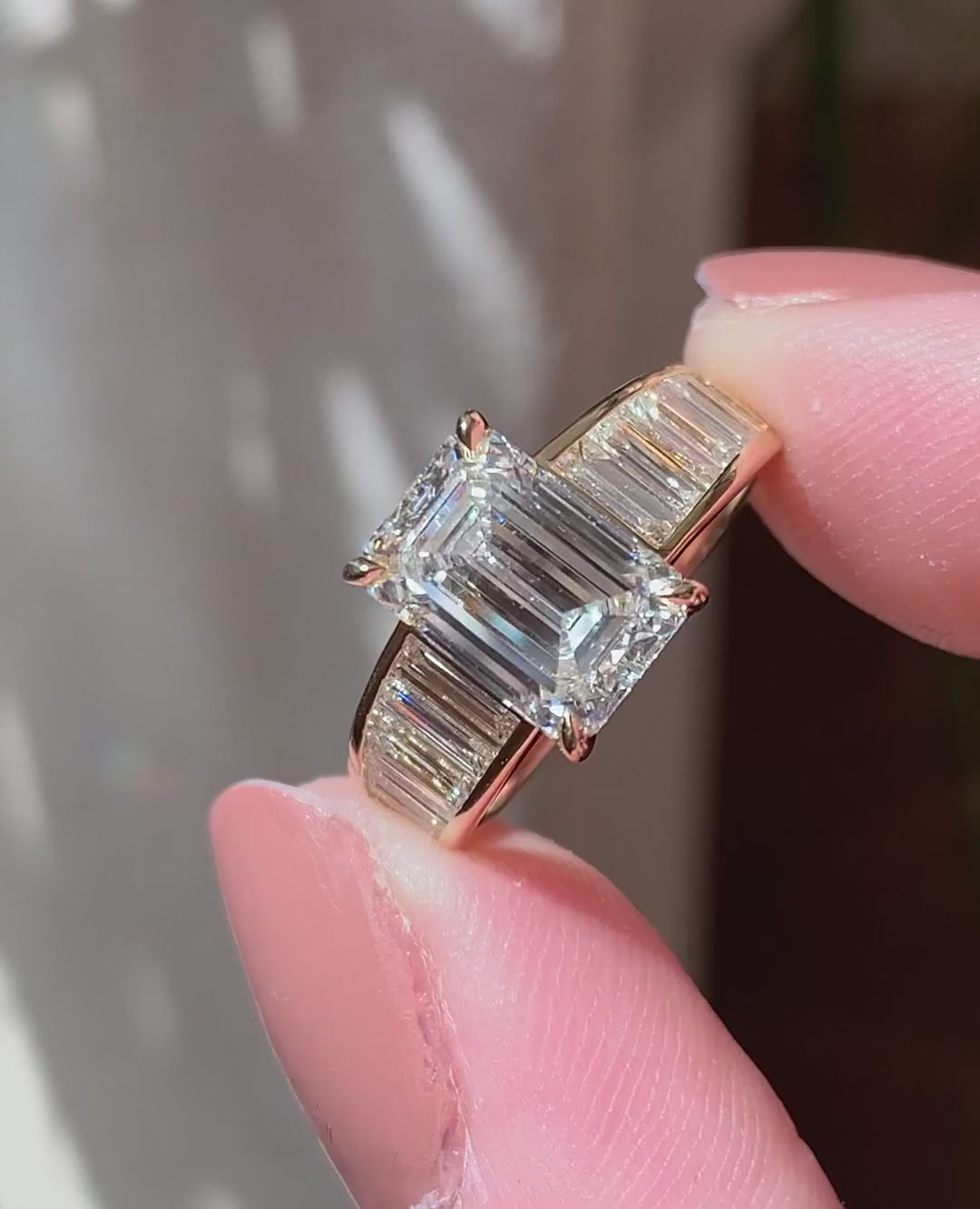 5 CT Emerald Cut Moissanite Engagement Ring, Channel Setting Ring, Tapered Baguette Ring Gold Wedding Ring,Gift for wife